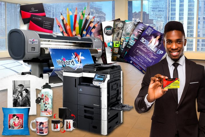 Logos, business cards, flyers, posters, funeral programs, and banners in vivid color.